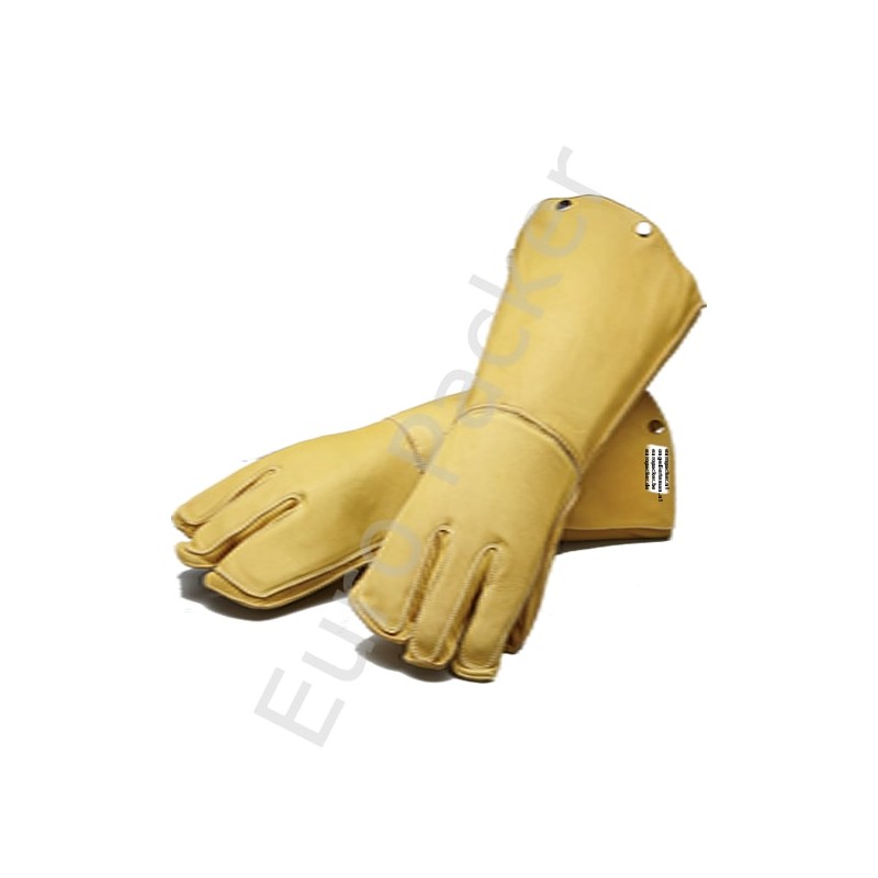 De dik gewatteerde handschoen van elandhuid biedt uitstekende bescherming tegen beten, krassen en het door boren van klauwen, tanden en krabben.