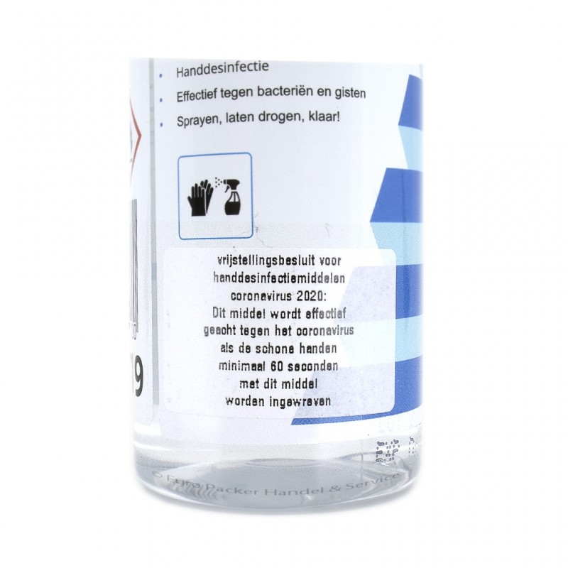 Ingrediënten: alcohol denat (80%) aqua demi, glycerin.