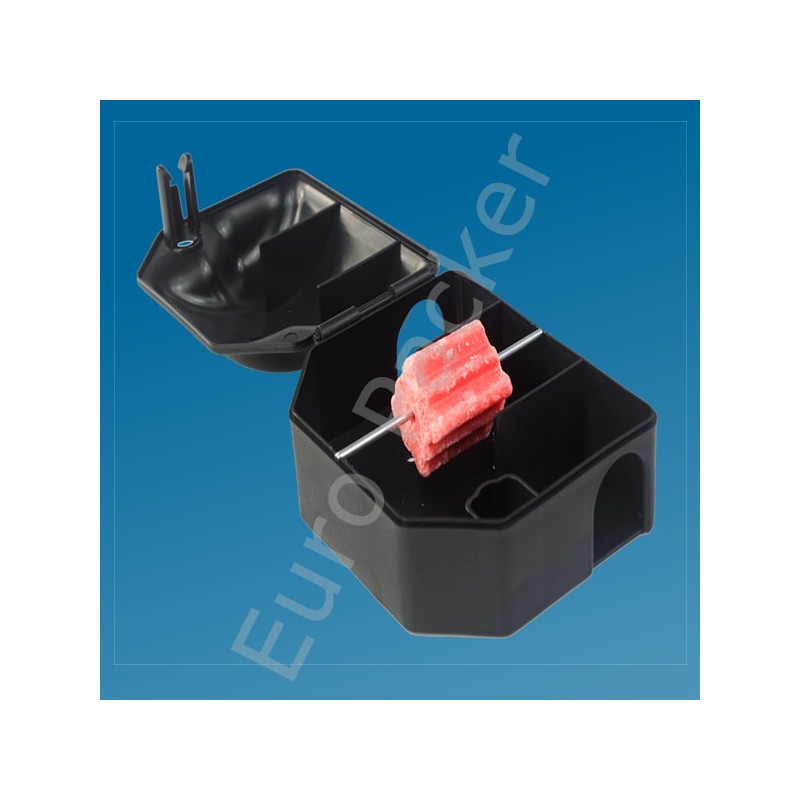 Een rechthoekige voerdoos voor het plaatsen van vergif/lokaas tegen muizenoverlast.